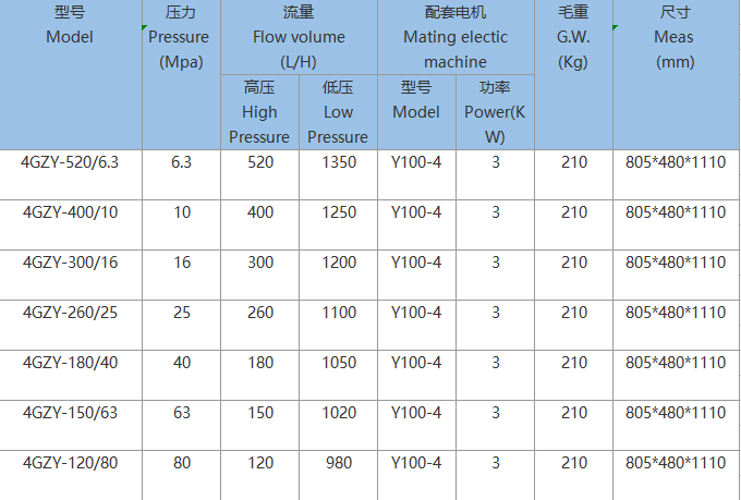 該泵系按水壓試驗(yàn)要求而特殊設(shè)計(jì)。在試壓的初始階段具有較大流量、能迅速充液和升壓,以縮短實(shí)驗(yàn)時(shí)間。當(dāng)壓力超過(guò)1.6MPa后、為使試壓過(guò)程能較平穩(wěn)而緩慢地進(jìn)行。則流量自動(dòng)減少。所以本泵在高、低壓時(shí)有兩種流量,并能自動(dòng)變換,凡在額定排出壓力以下,可進(jìn)行任意數(shù)值的水壓試驗(yàn)。